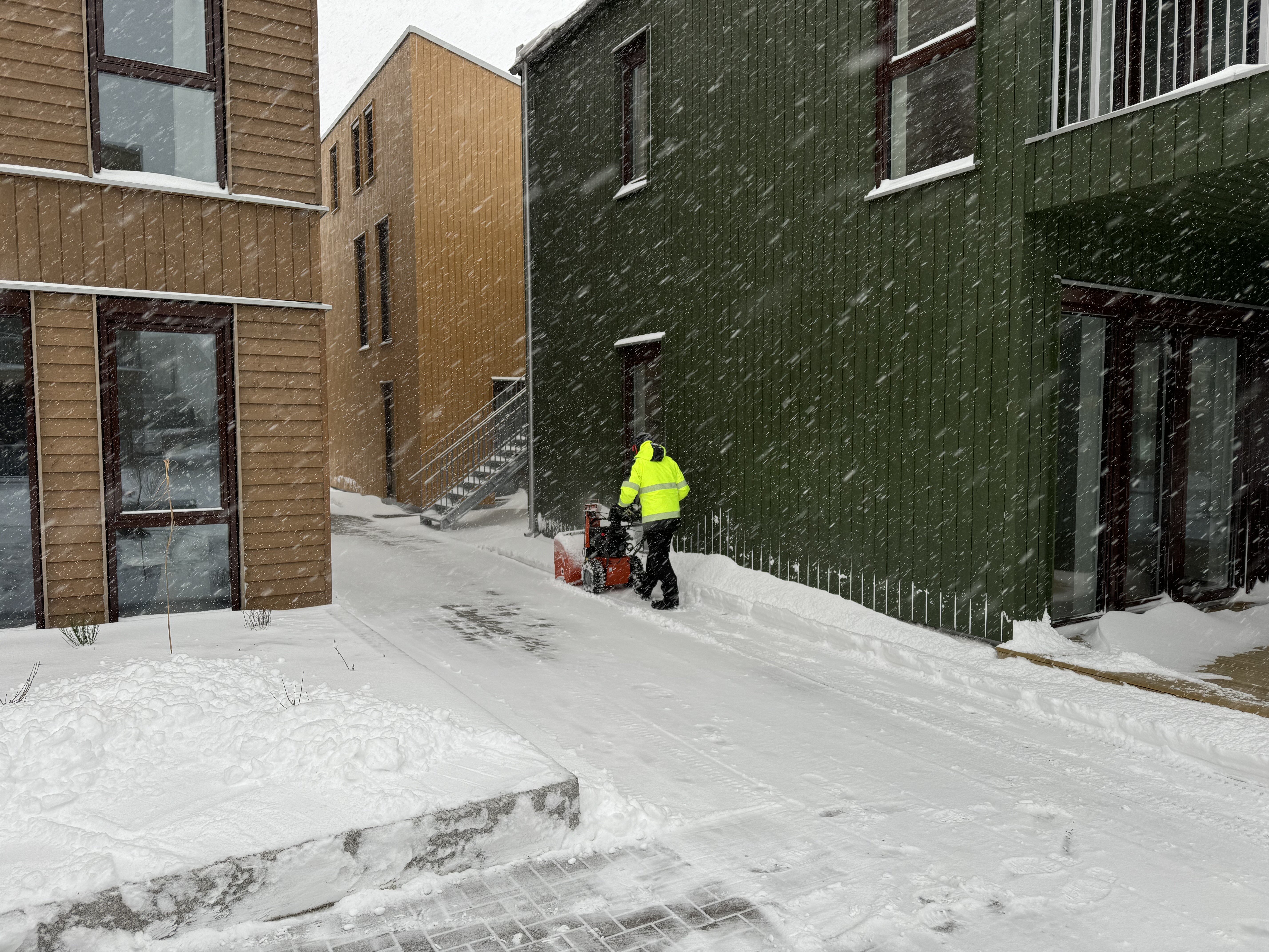 Rask og pålitelig måking ved snøfall over 5 cm. Strøing utføres etter behov for å sikre trygge uteområder hele vinteren.